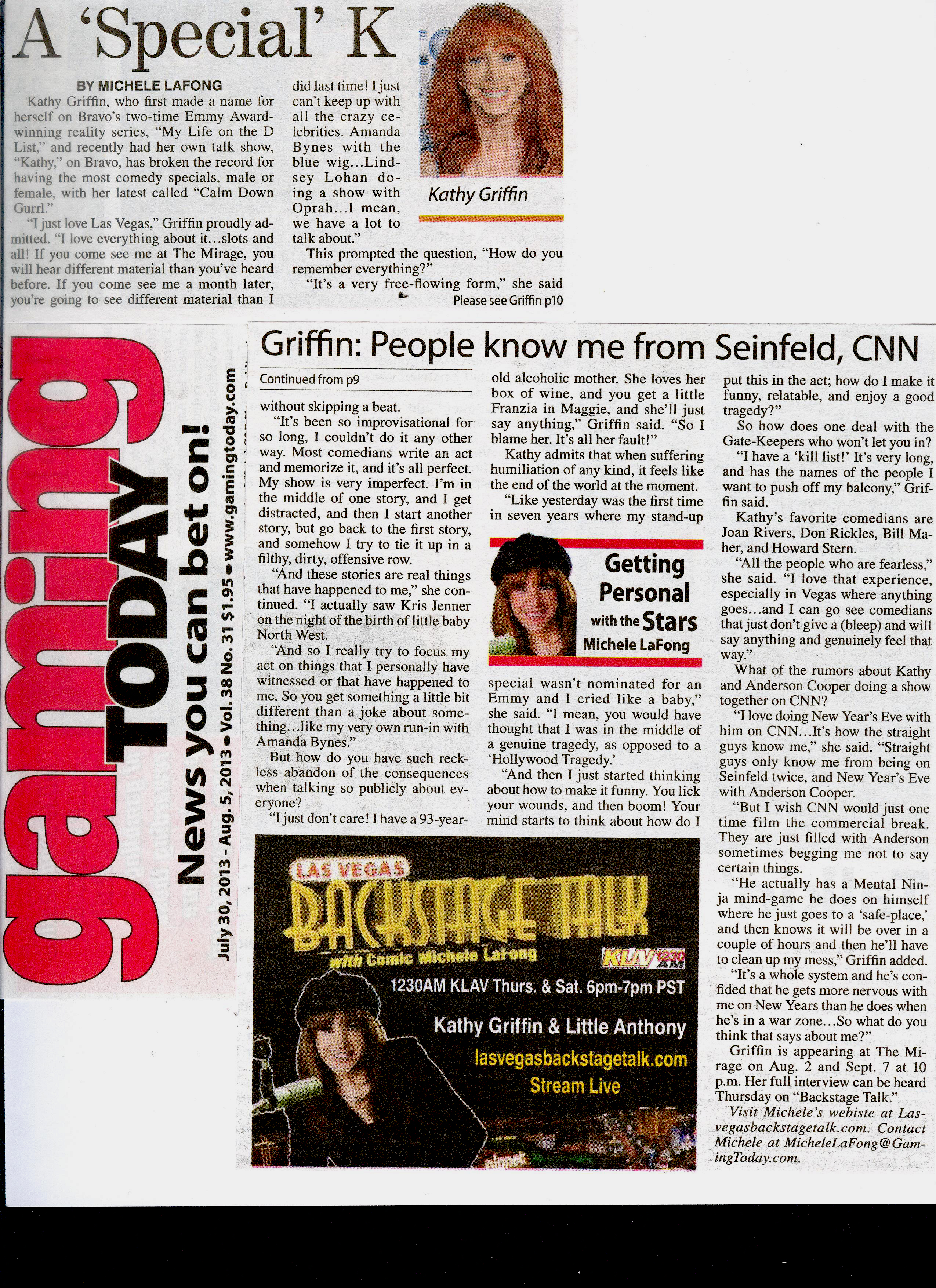 Kathy Griffin guests on Las Vegas Backstage Talk with Comedian Michele LaFong on 1230AM KLAV in Las Vegas, and The Web.