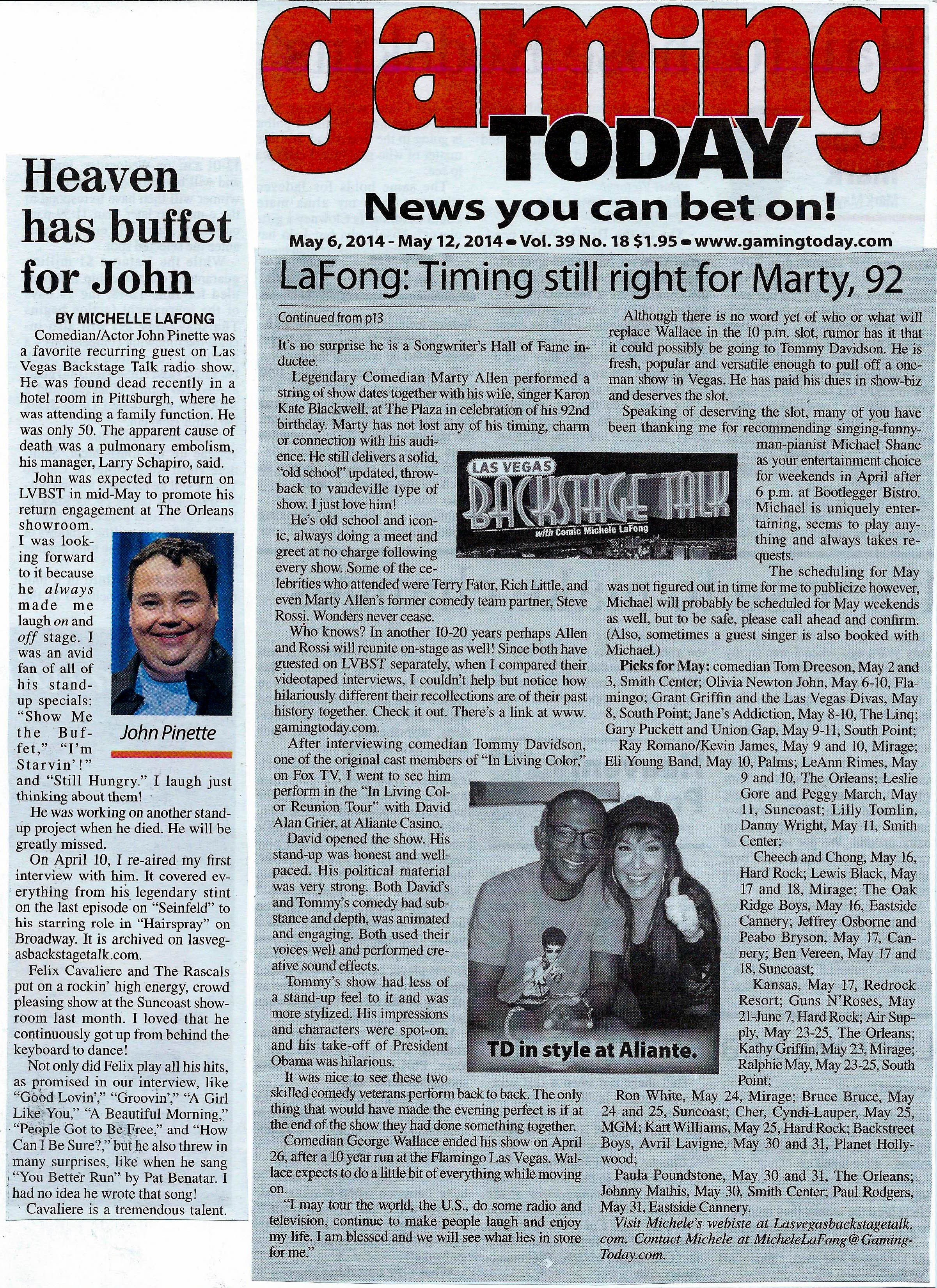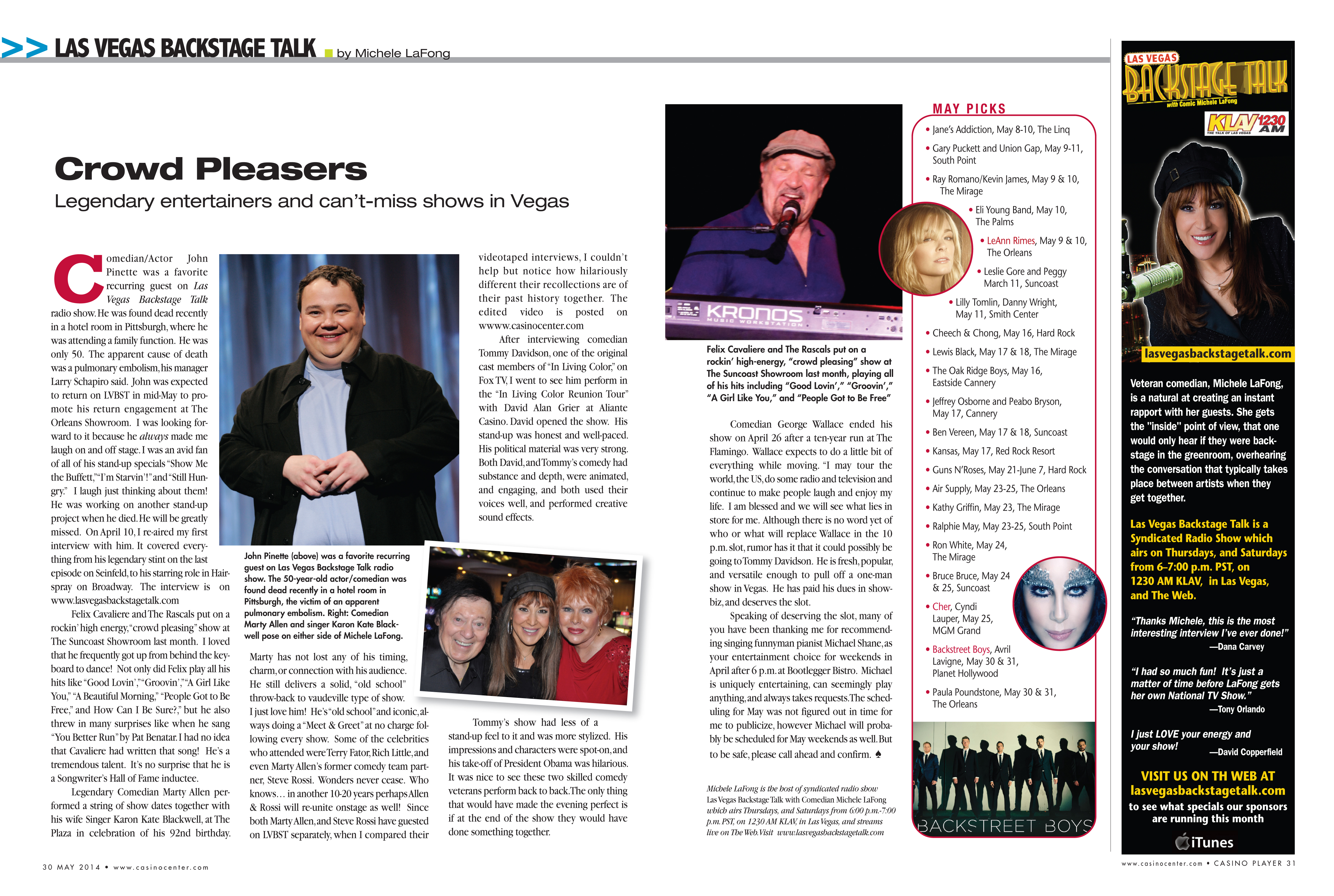 Will soon be featured in Michele LaFong’s Syndicated “Las Vegas Backstage Talk” Column in Casino Player Magazine, and Gaming Today.